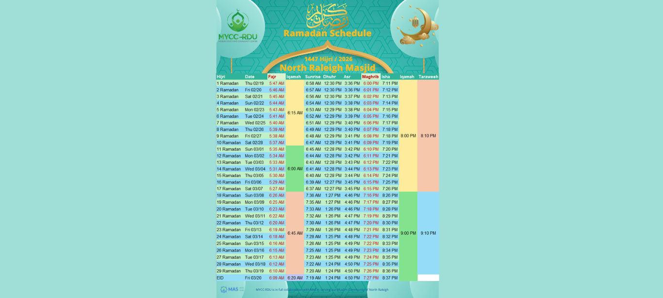 MYCC-RDU is an investment in our families and future generations. We plan to establish a place for our community to gather and our youth to have fun in an Islamic environment. The facility will provide a prayer-hall, activity center, game room and outdoor activities.